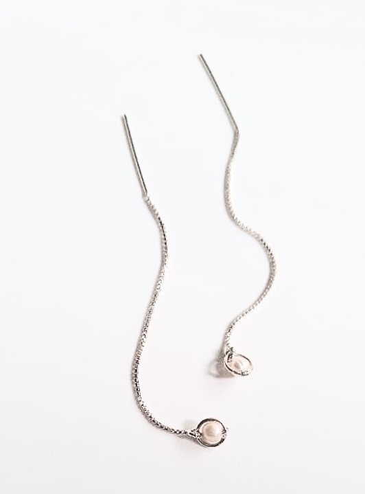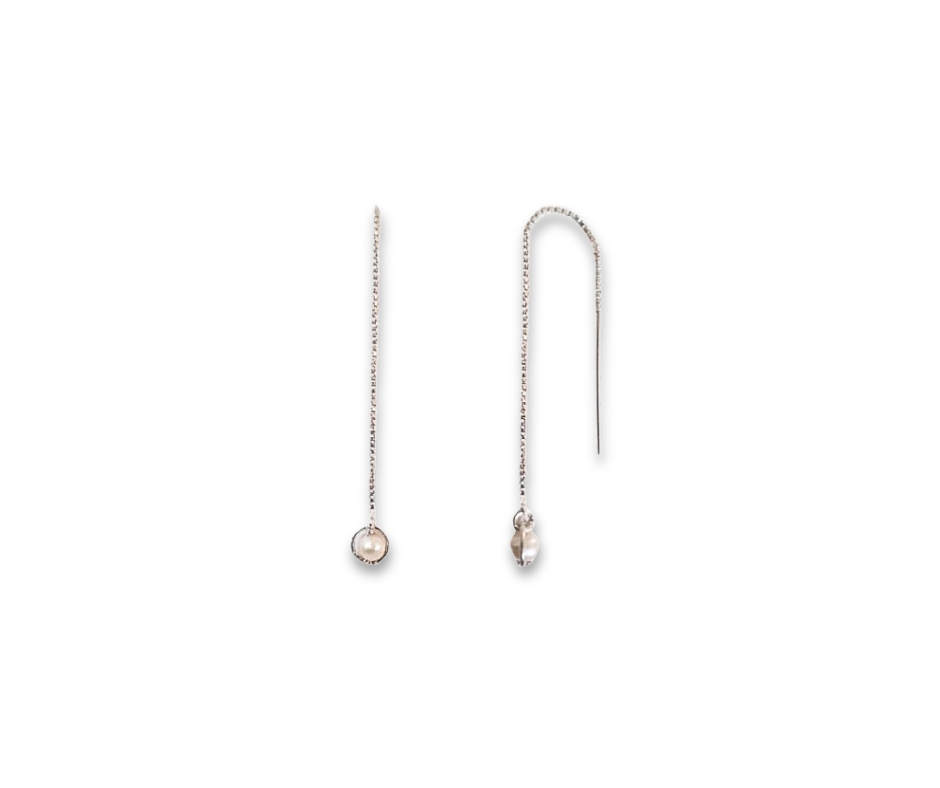Exquisitely crafted in polished silver, these Pearl Thread Earrings embody effortless luxury and modern refinement. Featuring a fluid thread-through design adorned with luminous pearls, they create a delicate movement that catches the light with every turn. The natural radiance of the pearls contrasts beautifully with the cool brilliance of silver, offering a look that is both timeless and contemporary.